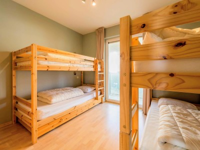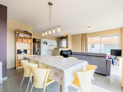 Living spacieux, côté soleil. Intérieur moderne avec meubles design. Deux chambres dont une avec un lit double et une avec 2 lits superposés. Cet appartement à 2 salles de bains: une avec douche et une avec baignoire.