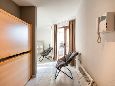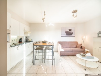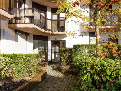 Cet appartement confortable et soigné se compose d'un large hall avec coin nuit, d'un salon avec cuisine ouverte équipée, d'un balcon d'angle spacieux, meublé et ensoleillé donnant sur le jardin, d'une chambre à coucher, d'une salle de bains avec douche, animaux non admis, non-fumeurs, parking inclus. Attention : parking souterrain pour bons conducteurs !