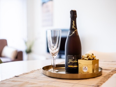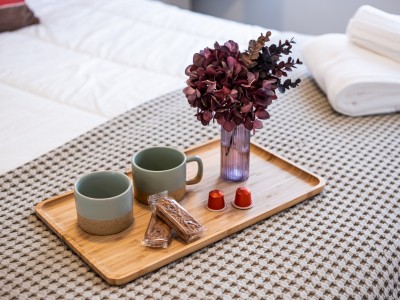 • Cuisine : plaque de cuisson à induction, four classique, micro-ondes, hotte aspirante, lave-vaisselle, réfrigérateur sans compartiment congélateur, cafetière percolateur et Nespresso, grille-pain, bouilloire, presse-agrumes, coquetier, mixeur, machine à brochettes électrique.