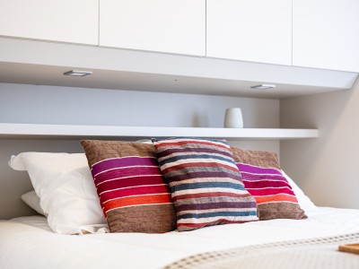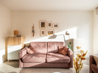 • Chambre à coucher : lit double (sommier 160x200), canapé-lit 2 pers (140x200) dans le séjour, 2 couettes doubles.