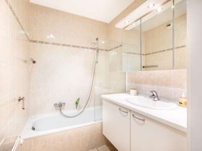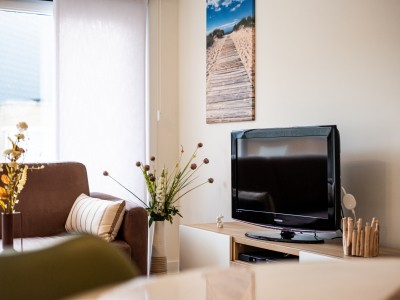 Cet appartement se compose d'un hall d'entrée, de toilettes, d'une chambre à coucher avec lit double, d'une salle de bains avec baignoire et cabine de douche, d'une cuisine équipée ouverte (lave-vaisselle/four classique/micro-ondes/plaque de cuisson à induction/réfrigérateur sans compartiment congélateur), d'un séjour ensoleillé avec coin salon/lavabo, d'une télévision numérique, d'un débarras et d'un balcon orienté au sud avec 2 chaises et une table de bistrot.