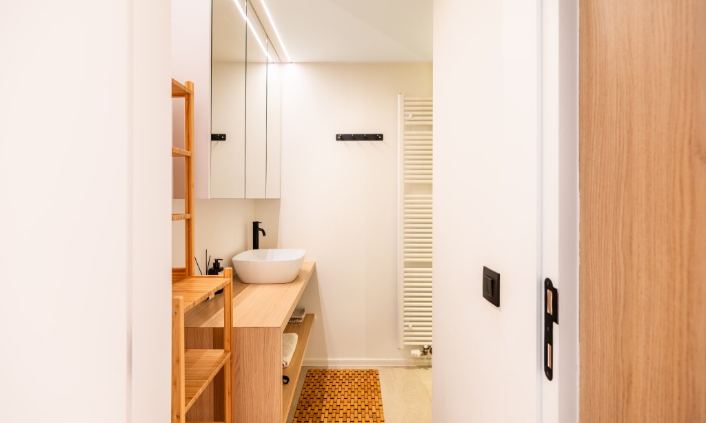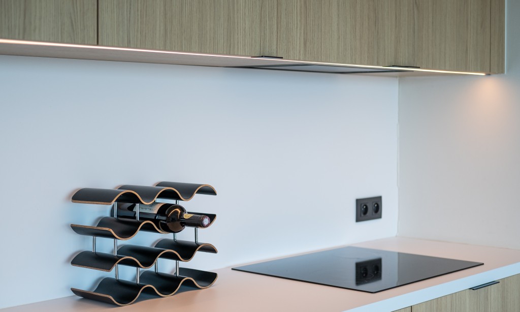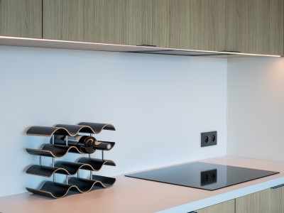Hall d’entrée avec vestiaire ; séjour avec cuisine ouverte intégrée et moderne équipée de tout confort ; salle de bain avec douche à l’italienne, lavabo et toilette ; une chambre avec lit double et une chambre avec lits superposés pour 2 personnes (2x lit simple). Magnifique vue sur mer et cour à l’arrière avec accès par les chambres.