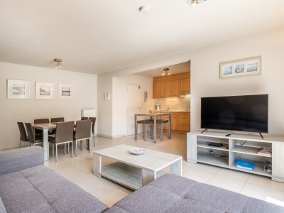 Appartement lumineux de 2 chambres au rez-de-chaussée, à 250 m de la mer et à 200 m du centre de Saint-Idesbald (commune entre Coxyde et De Panne). Animaux admis. Garage inclus dans le prix. L'appartement est adapté pour les personnes à mobilité réduite.