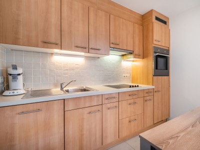 • Cuisine: cuisiné équipée avec appareils encastré, taque vitro céramique, four à air chaud, four micro-ondes, hotte, lave-vaisselle, réfrigérateur avec petit congélateur, senseo