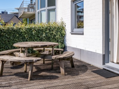 • Extérieur: terrasse ensoleillée (min 10m²), meubles jardin ou balcon, chaises longues