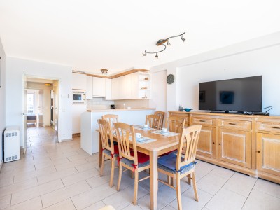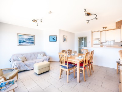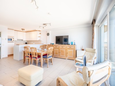 Appartement avec 2 chambres à coucher, 5ième étage et sur la digue, près du centre, des magasins et restaurants. Animaux admis.