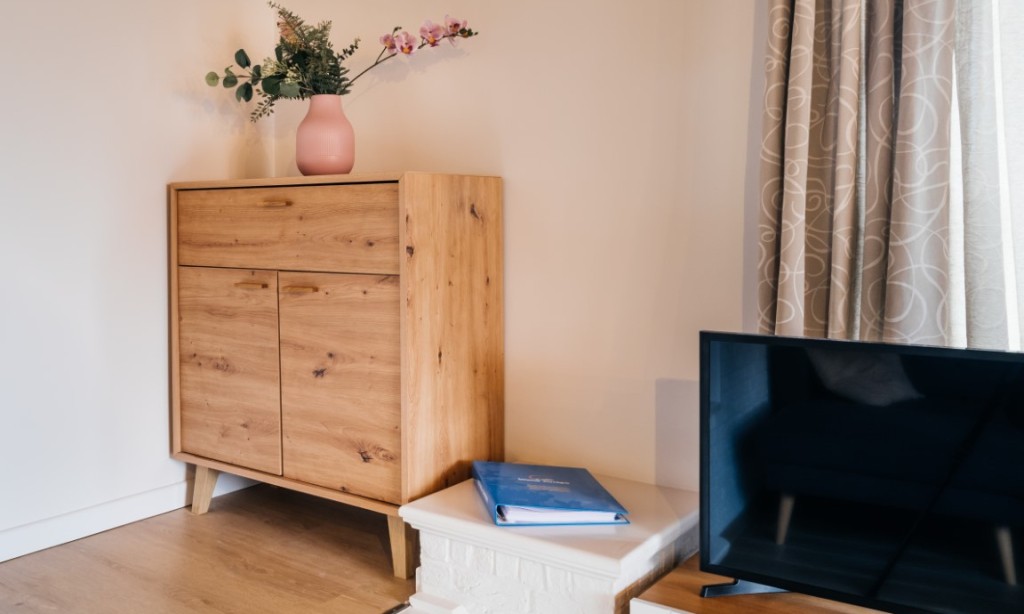 La villa se compose d'un hall, toilette séparée, cuisine rénovée et entièrement équipée, living avec télé, salle de douches, une chambre avec deux lits simples et trois chambres avec lit double. Dans trois chambres il a y un lavabo avec eau froide.