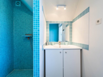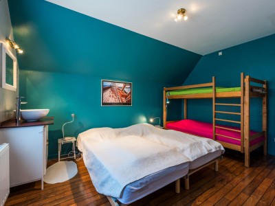Au 2ème étage: chambre avec 2 lits simple et un lit superposé et une chambre avec lit simple, toilettes et salle de bains avec douche.