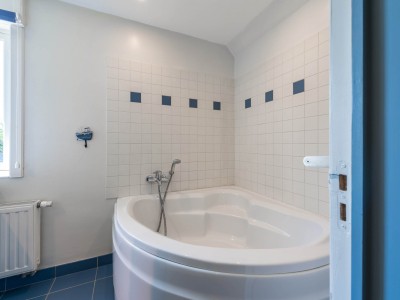 Au 1er étage: 2 chambres à coucher avec 2 lits simples chacun, toilette, salle de bains avec baignoire.