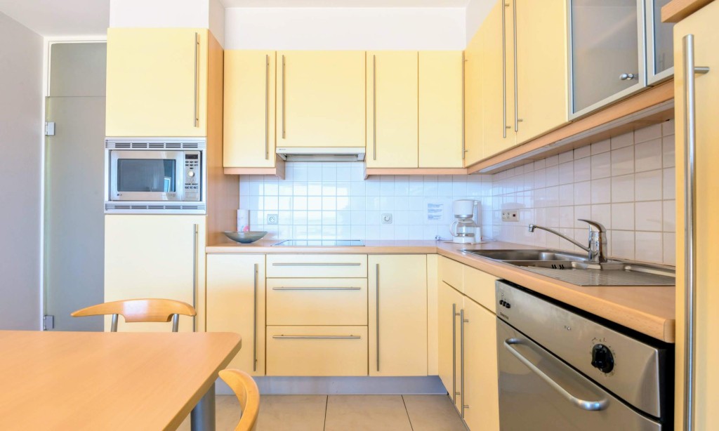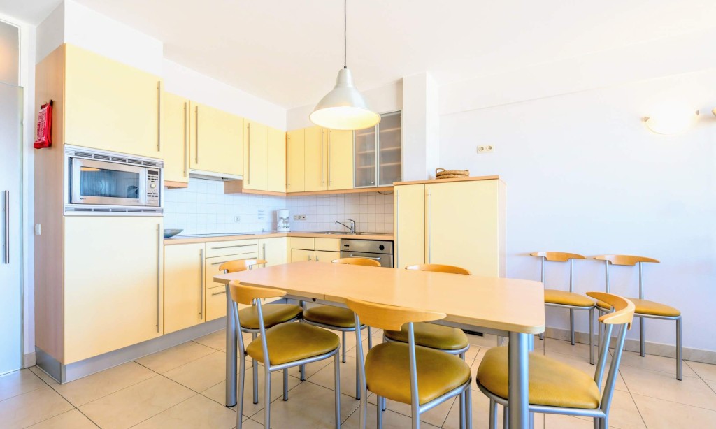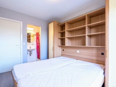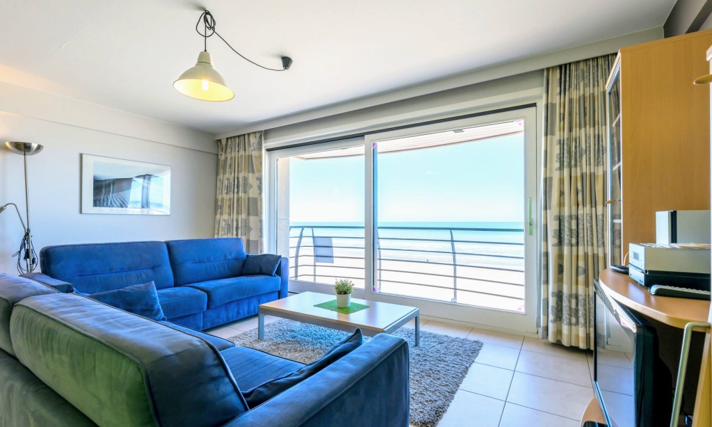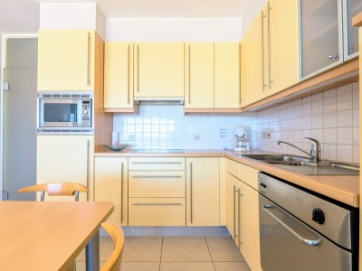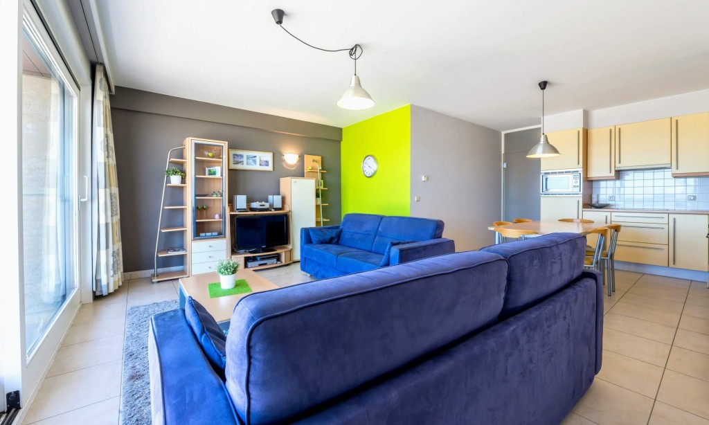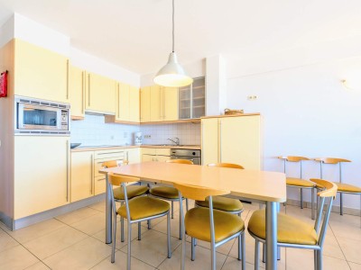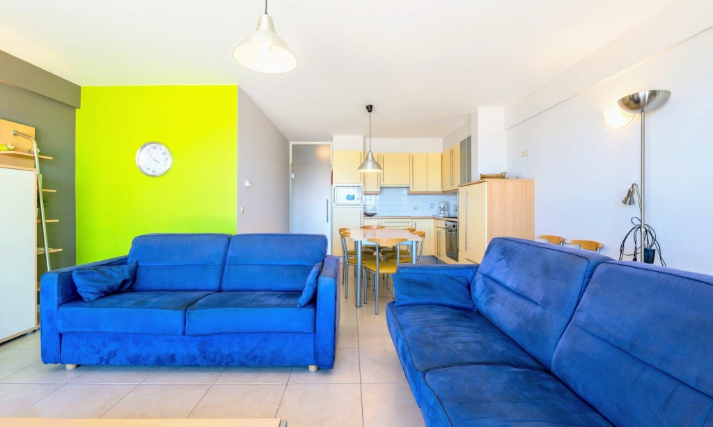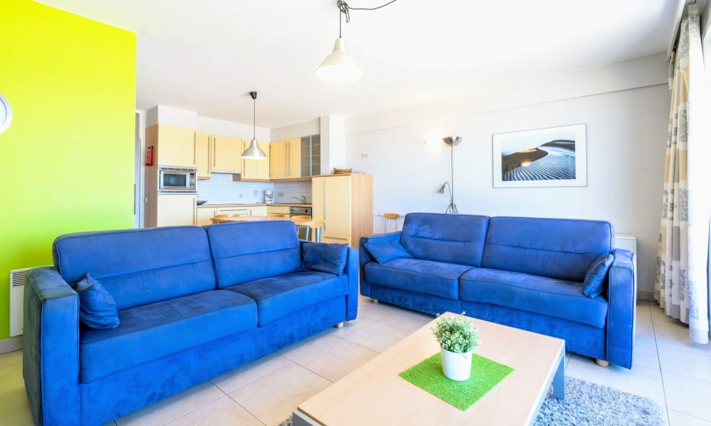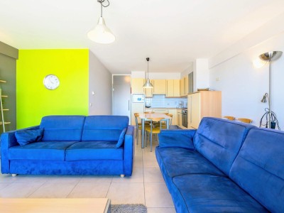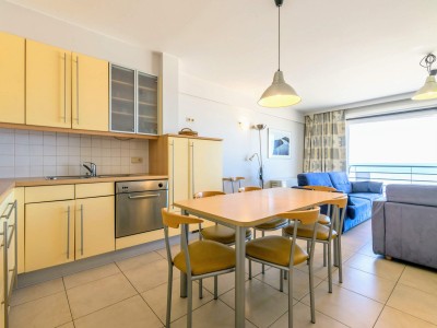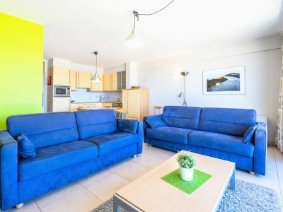L'appartement se compose d'un living avec un balcon vu sur mer, une cuisine ouverte et entièrement équipée. Chambre avec lit double équipée de salle de douches privée, une chambre avec deux lits simples. Salle de bains avec baignoire, toilette séparée, un divan-lit pour deux personnes dans le living.
