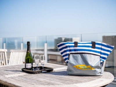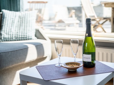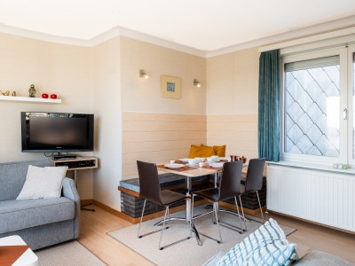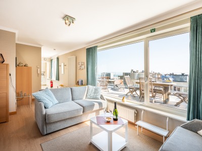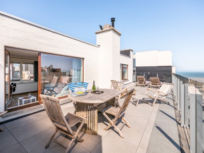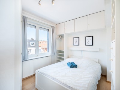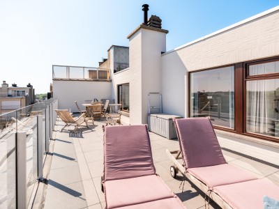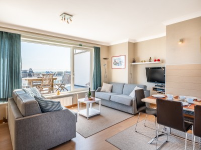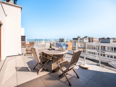 Appartement penthouse au 6ième étage avec une chambre. L'appartement est situé à quelques pas de la mer et à proximité des commerces et restaurants. Décoré dans un style classique. Il y a environ 10 éscaliers à l'entrée de l'immeuble et il y a un ascenseur jusqu'au 5ième étage et puis un escalier jusqu'au 6ième étage. Belle grande terrasse avec vue sur mer. Wifi et télévision digitale. Animaux admis.