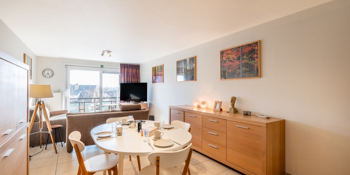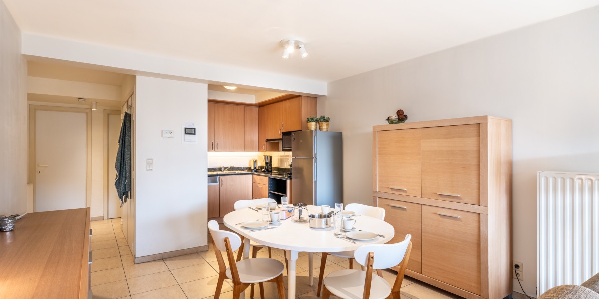 L'appartement se compose d'un hall, toilette, salle de bains avec baignoire, chambre avec lit double, chambre avec 2 lits simples et lits superposés, cuisine équipée avec lave-vaisselle et micro-onde, living ensoleillée avec balcon (petite vue mer).