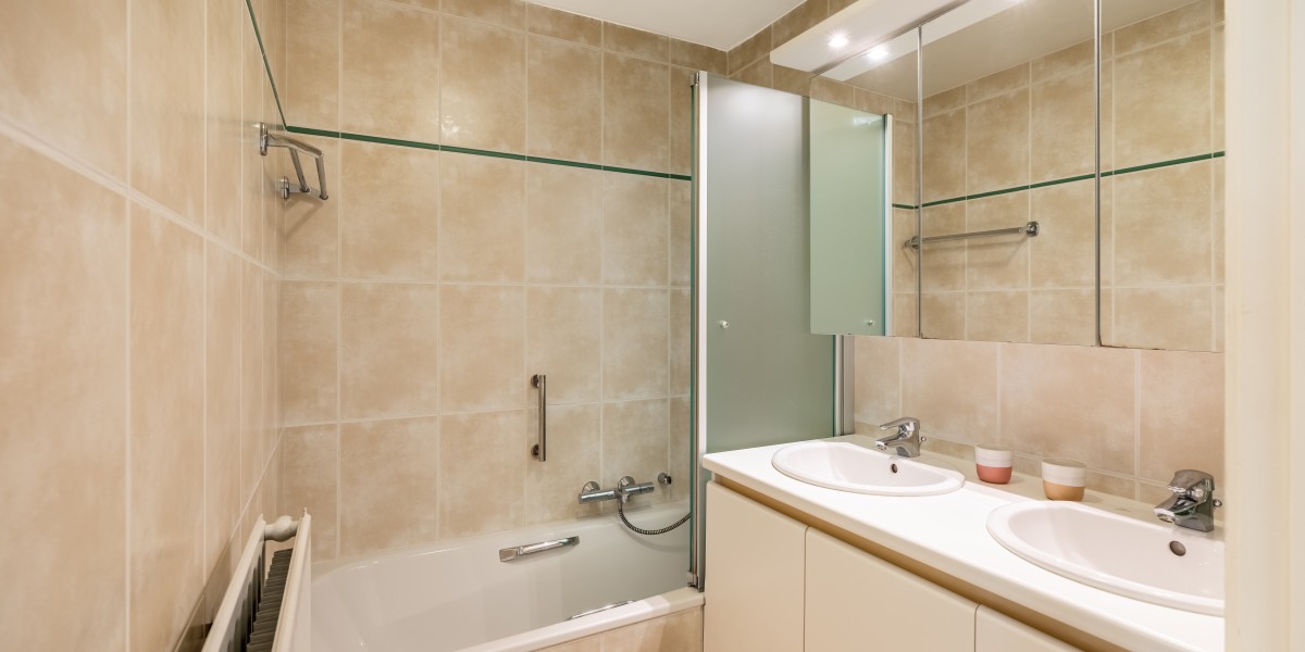 • Sanitaire:  salle de bains avec baignoire, baignoire avec rideau/paroi, toilette séparée de la salle de bains