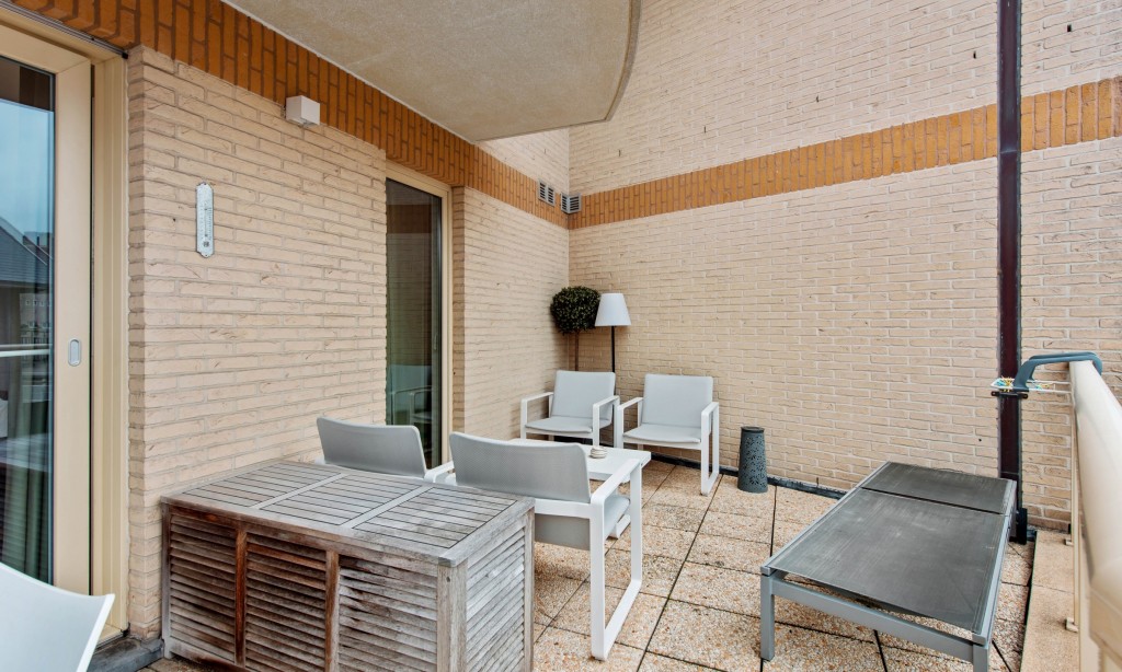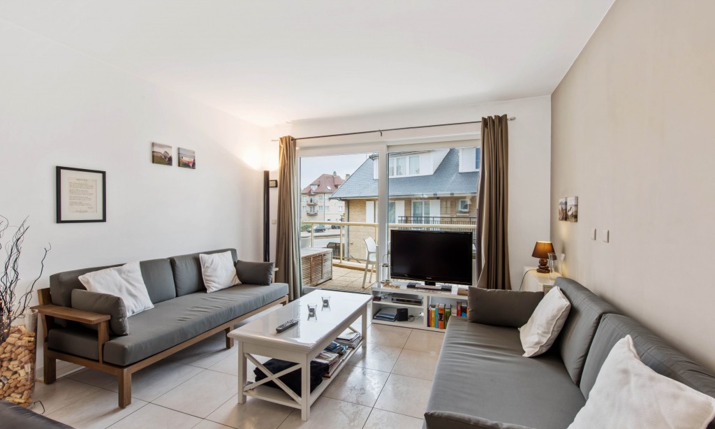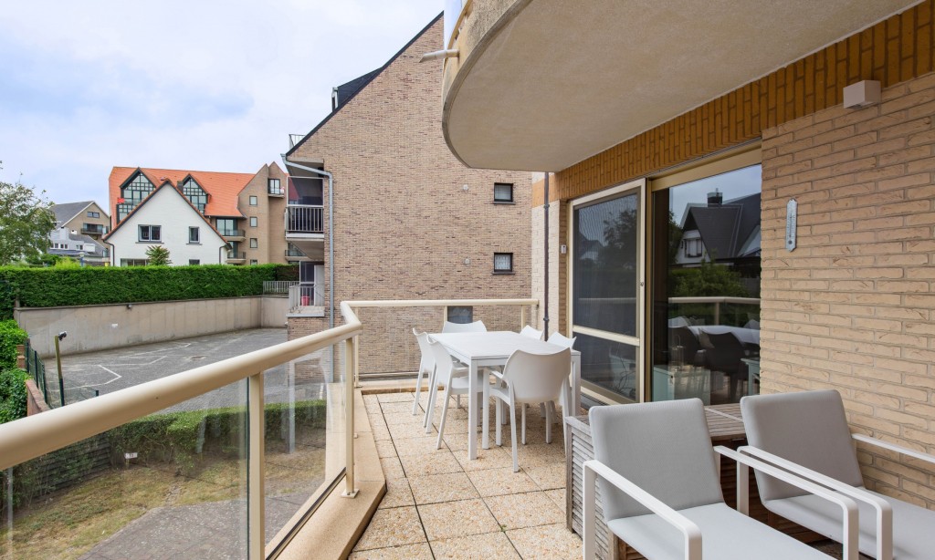 Appartement avec 2 chambres à coucher sis au rez-de-chaussée surélevée. A 150m de la digue et pas loin du centre commerciale. Garage inclus dans le prix. Animaux interdits.