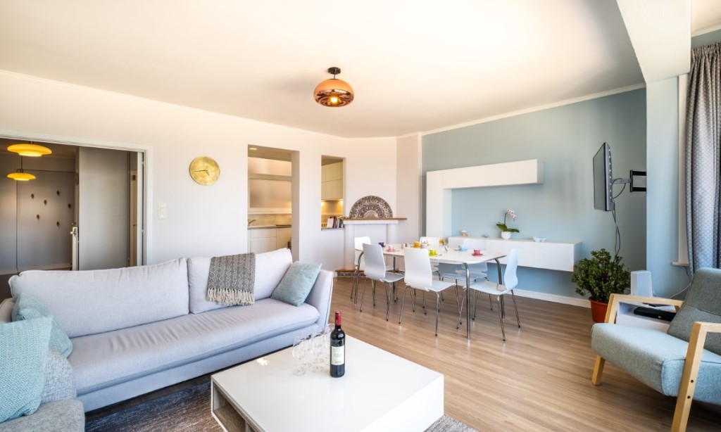 Spacieux appartement rénové au 5ème étage, avec une magnifique vue sur la mer, à proximité du centre-ville avec ses commerces et restaurants. Un véritable bijou.
