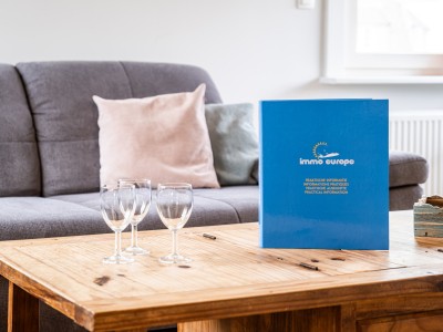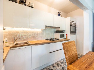 Hall avec escalier, salon/salle à manger, cuisine ouverte entièrement équipée, 1 chambre un 2 lits pour 1 pers. confortable et de nombreux placards de rangement, salle de bains avec toilettes/baignoire/douche.