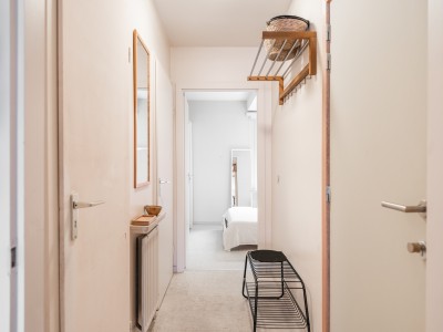 Cet appartement comprend un hall d'entrée, salon ensoleillé avec balcon et une cuisine ouverte, une salle de bains avec baignoire et toilette, 1 chambre avec lit double et une chambre avec un lit superposé pour 3 personnes (lit 1 pers. en haut et lit 2 pers en bas).