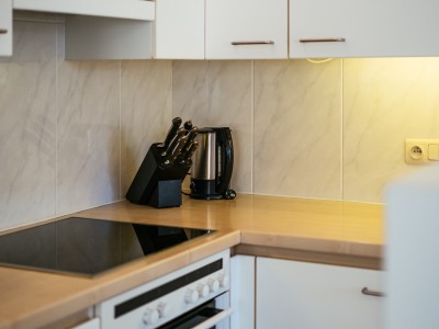 Un living très soleilleux, meubles modernes, 2 chambres à coucher une avec lit double, une avec lit superposé, télévision flatscreen dans chaque chambre. Excellente cuisine ouverte, machine à laver dans le salle de bains.