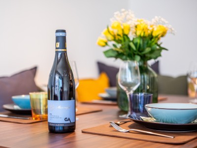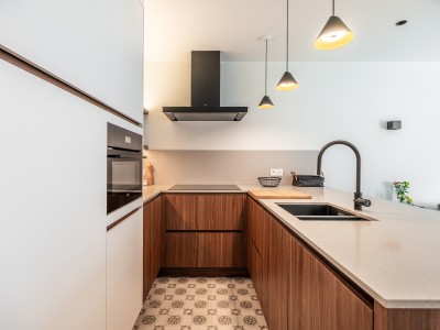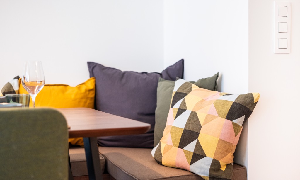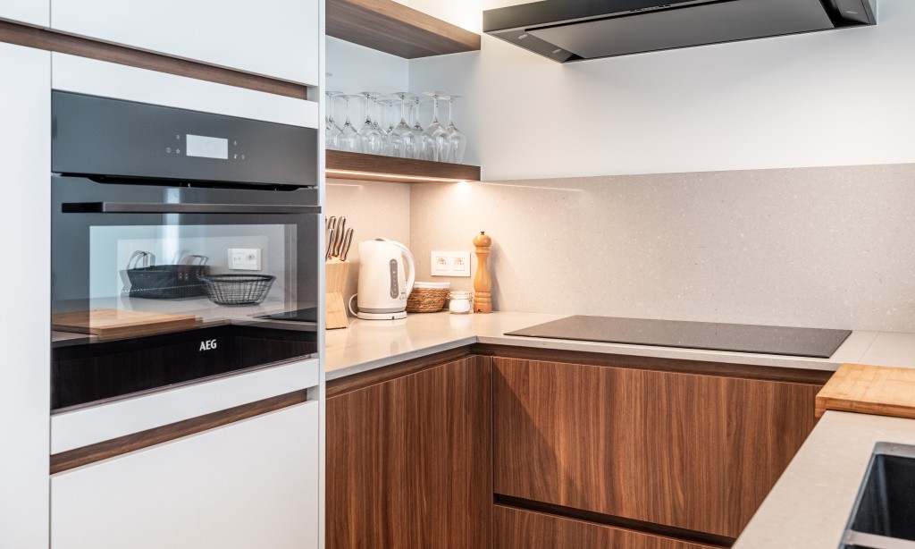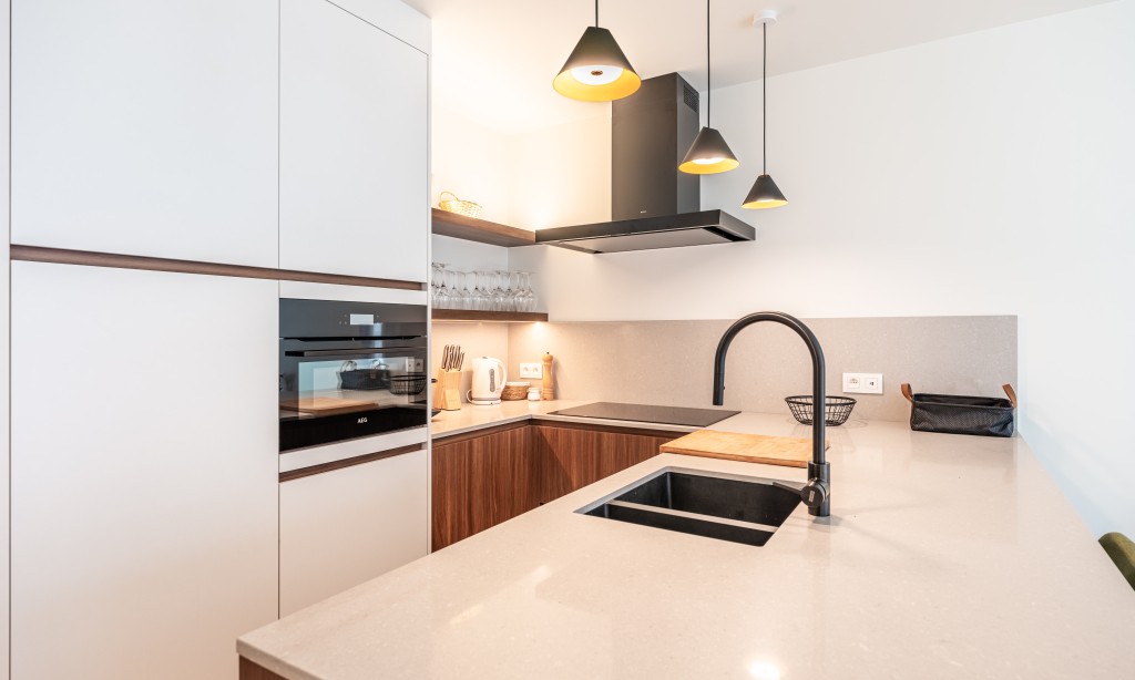 L'appartement se compose d'une salle de séjour ensoleillée avec cuisine intégrée, élégante et moderne, équipée d'un lave-vaisselle, d'un four mixte, d'un grand réfrigérateur et d'une plaque de cuisson à induction. En outre, une table à manger pour 6 personnes avec un canapé confortable et 2 tabourets de bar supplémentaires à la table de la cuisine. Il y a un débarras pratique, une salle de bains avec douche à l'italienne et lavabo, des toilettes séparées, une chambre avec un lit double à ressorts, une chambre avec 2 lits simples à ressorts. Au total, 4 personnes peuvent y passer la nuit. Balcon ensoleillé à l'avant avec 2 chaises longues et une table, ainsi qu'un balcon dans les chambres.