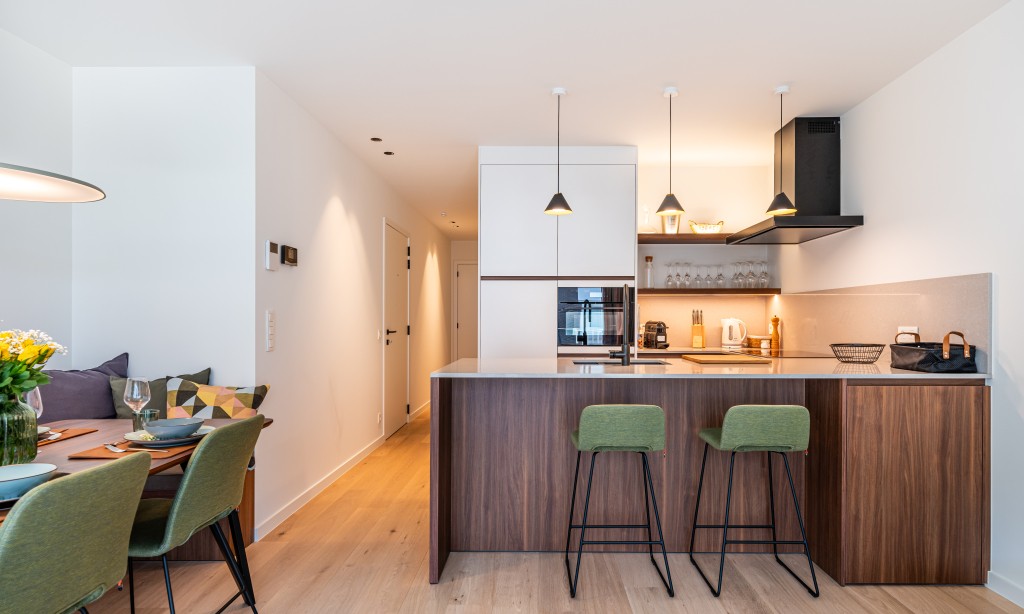 Appartement moderne et luxueux (72m²) en neuf, avec 2 chambres au 3ᵉ étage avec ascenseur. La digue et la plage sont juste au coin de la rue. À distance de marche, vous trouverez de bons restaurants, de nombreuses boutiques spécialisées et la côte tramway à proximité. Aménagé dans un style chaleureux et convivial, il est équipé de tout le confort. Animaux non admis. Interdiction de fumer.