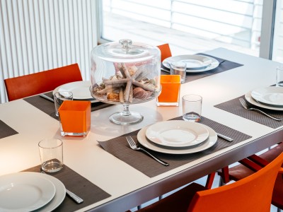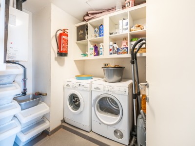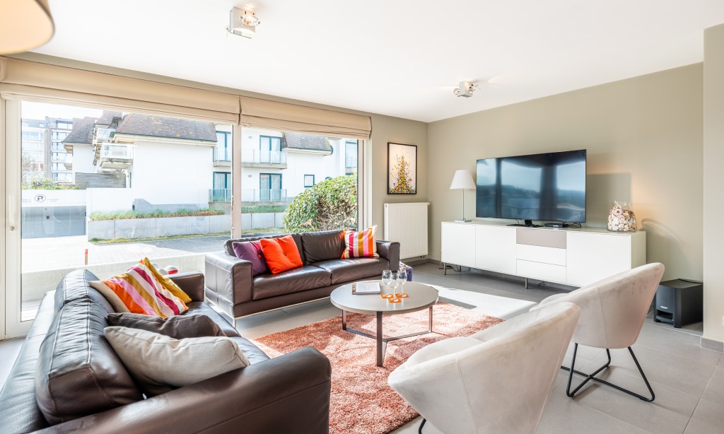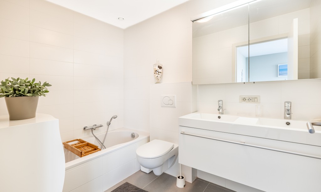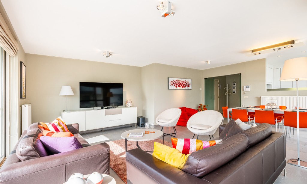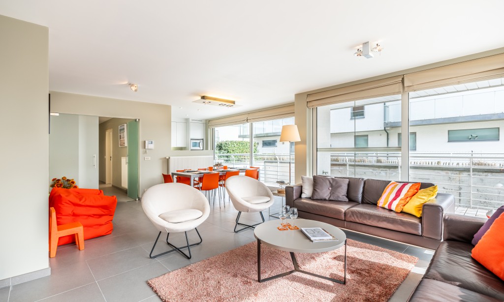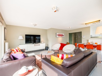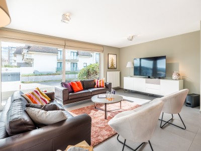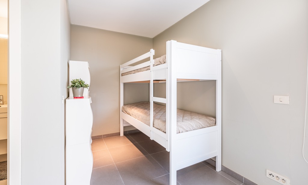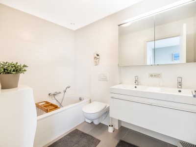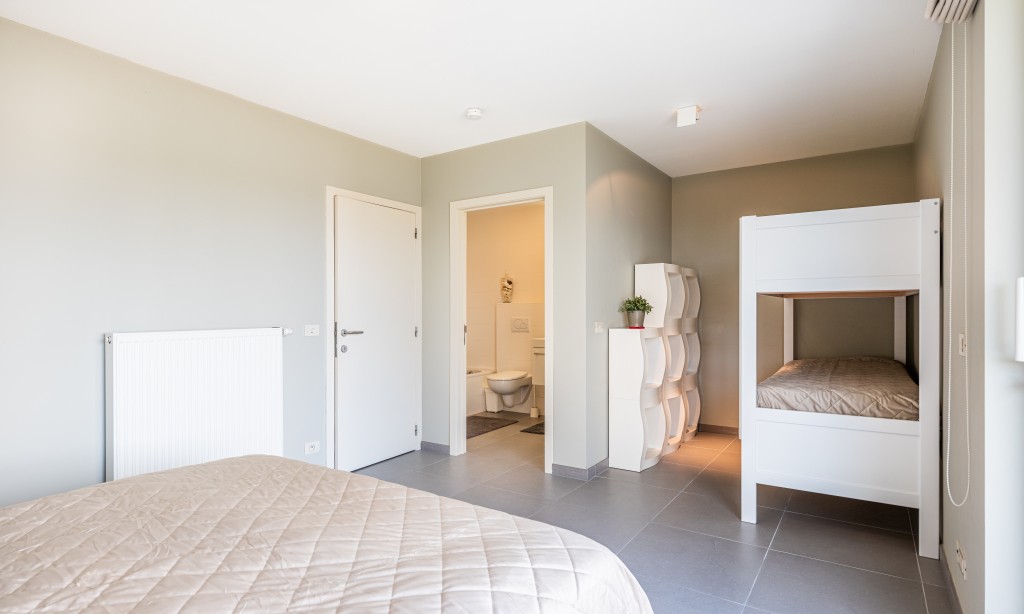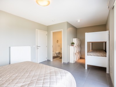 Entrez dans le hall d'entrée avec toilettes séparées et débarras/buanderie avec lave-linge, sèche-linge et étendoir. Dans le spacieux salon-salle à manger, vous pourrez profiter d'un film en famille dans le coin télé, prendre vos repas confortablement et cuisiner dans la cuisine ouverte équipée d'une plaque de cuisson vitrocéramique, d'un four micro-ondes combiné, d'un lave-vaisselle, d'un réfrigérateur avec compartiment congélateur. Depuis le salon, vous avez accès au balcon ensoleillé à l'avant et à la terrasse avec table/chaises/parasol sur le côté. Il y a 2 grandes chambres, chacune avec sa propre salle de bain. La première chambre a 2 lits simples boxspring (90x200), 2 oreillers et 1 couette (240x220) ainsi qu'une douche et un lavabo. Depuis cette chambre, vous avez un accès direct à la terrasse. La deuxième grande chambre dispose également de 2 lits simples boxspring (90x200) et d'un lit superposé (2 x 80 x 200). Il y a 4 oreillers et 3 couettes (2 de 140x90 et 1 de 240x220) fournis. Cette chambre dispose d'une salle de bain privée avec baignoire, double lavabo et toilettes. Dans les deux chambres, il y a suffisamment de place pour ajouter un lit bébé.
