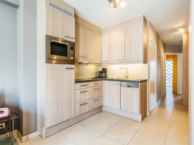 L'appartement se compose d'un living avec vu mer, cuisine ouverte et équipée, salle de douche, 1 cambre avec 1 lit 2 pers., 1 chambre avec 1 lit superposé, divan lit 2 pers. dans le living.