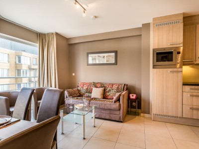 Appartement 2 chambres à coucher avec vue latéral sur mer, à 80m de la digue et près du centre de Koksijde. Belle terrasse ensoleillée à l'arrière de l'appartement.