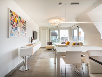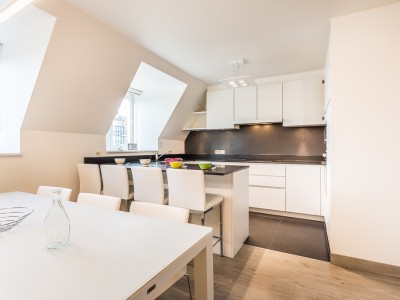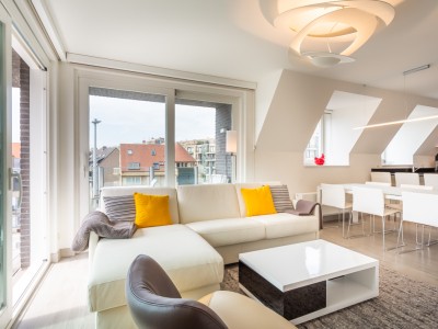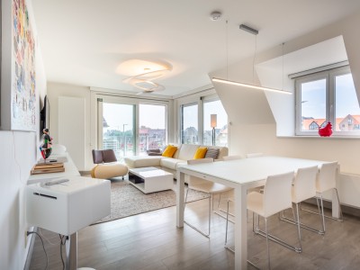 Appartement d’angle ensoleillé avec 1 chambre, situé près du centre et à 250 m de la digue. Appartement moderne et élégant au 3ᵉ étage avec ascenseur. Garage inclus dans le prix. Animaux non admis.