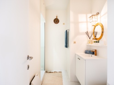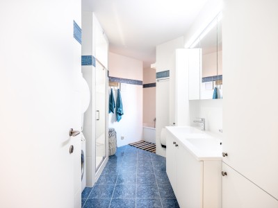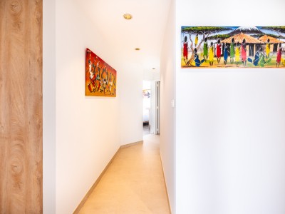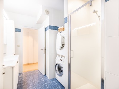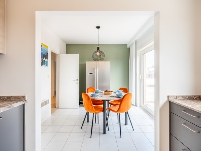 Cet appartement spacieux se compose d'un hall, d'une grande salle à manger - salon avec mobilier design, accès à la terrasse, coin lecture dans le salon. La cuisine séparée avec lave-vaisselle, micro-ondes combiné, plaque de cuisson électrique et réfrigérateur américain dispose également d'un coin repas pour 4 personnes. Depuis la cuisine, vous pouvez également accéder à la terrasse et prendre votre petit-déjeuner à l'extérieur. Il y a 3 chambres. Une chambre avec un lit superposé et 1 lit simple (90x200, 3 couettes simples 140x200), une chambre avec un lit double, une chambre avec un lit double et un lit bébé à fond relevable équipé d'un matelas, d'un oreiller et d'une couette. Il y a 1 WC séparé, 1 WC dans la salle de bains, 1 salle de bains avec douche, 1 salle de bains avec baignoire et douche.