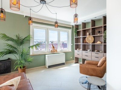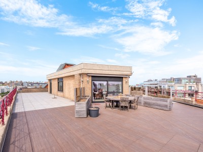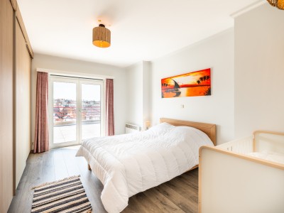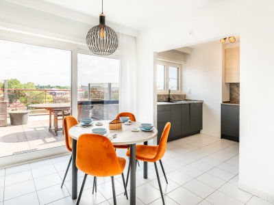 Grand penthouse élégant de 3 chambres dans le centre de Koksijde, à 500 m de la mer et à proximité immédiate des commerces. Cet appartement mansardé récemment rénové est situé au dernier étage et dispose d'une grande terrasse qui fait le tour de l'appartement. Vous êtes assuré de passer un séjour luxueux au bord de la mer avec une grande famille.