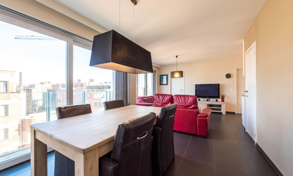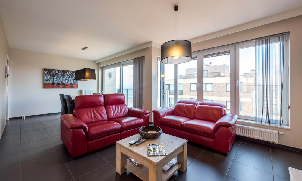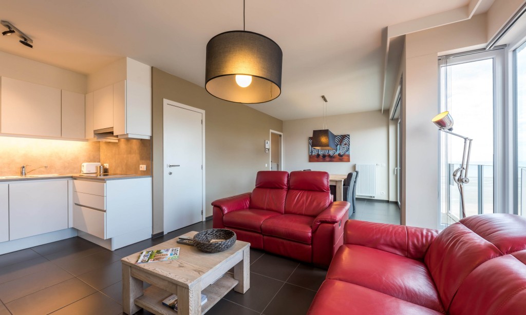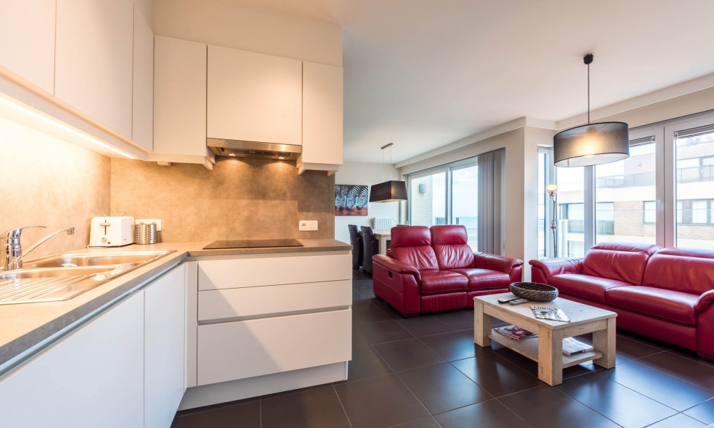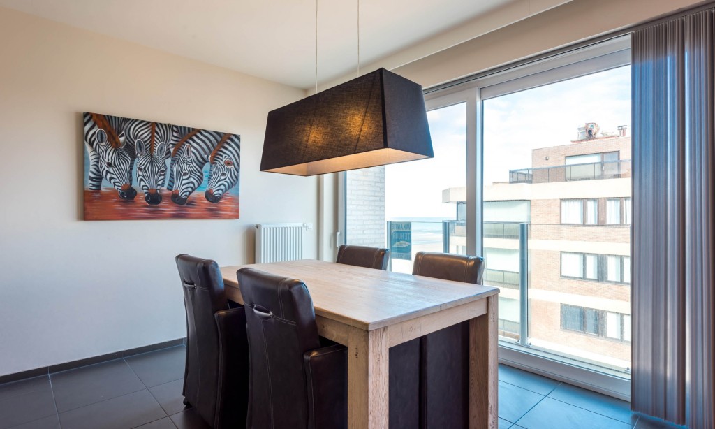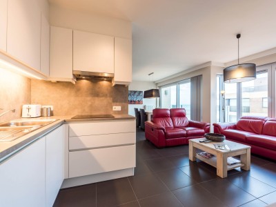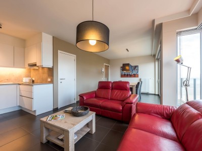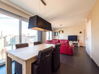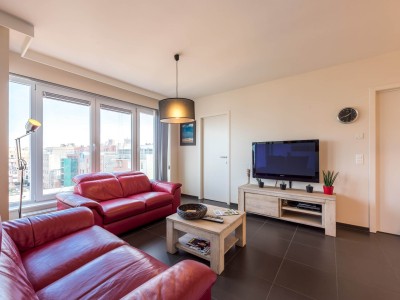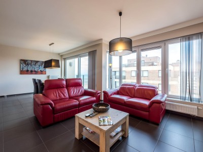 Très belle appartement dans une résidence récente avec 2 chambres et vue latérale sur mer. L'appartement est situé au 6e étage avec ascenseur, moderne et équipé de tout le confort avec une cuisine entièrement équipée. L'appartement est situé au centre de Coxyde, à l'angle de la digue et d'une rue perpendiculaire à la mer.