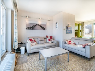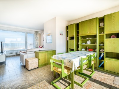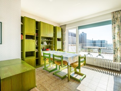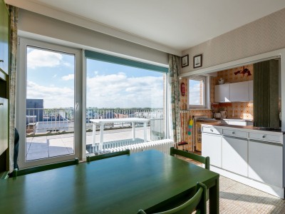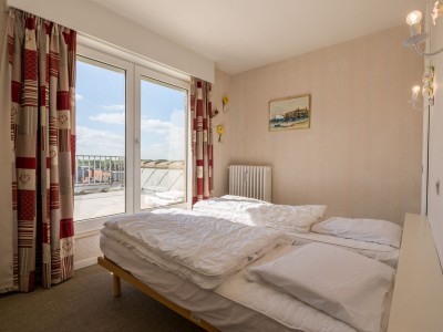 Penthouse avec 2 chambres sur la digue. 2 grandes terrasses. Cet appartement se compose d'un living avec vue sur la mer et accès à la terrasse, salle à manger et cuisine avec accès à la terrasse ensoleillée. Salle de bains avec baignoire, une chambre double et une chambre avec deux lits simples. TV digitale et wifi. Animaux acceptés.