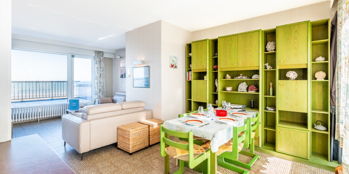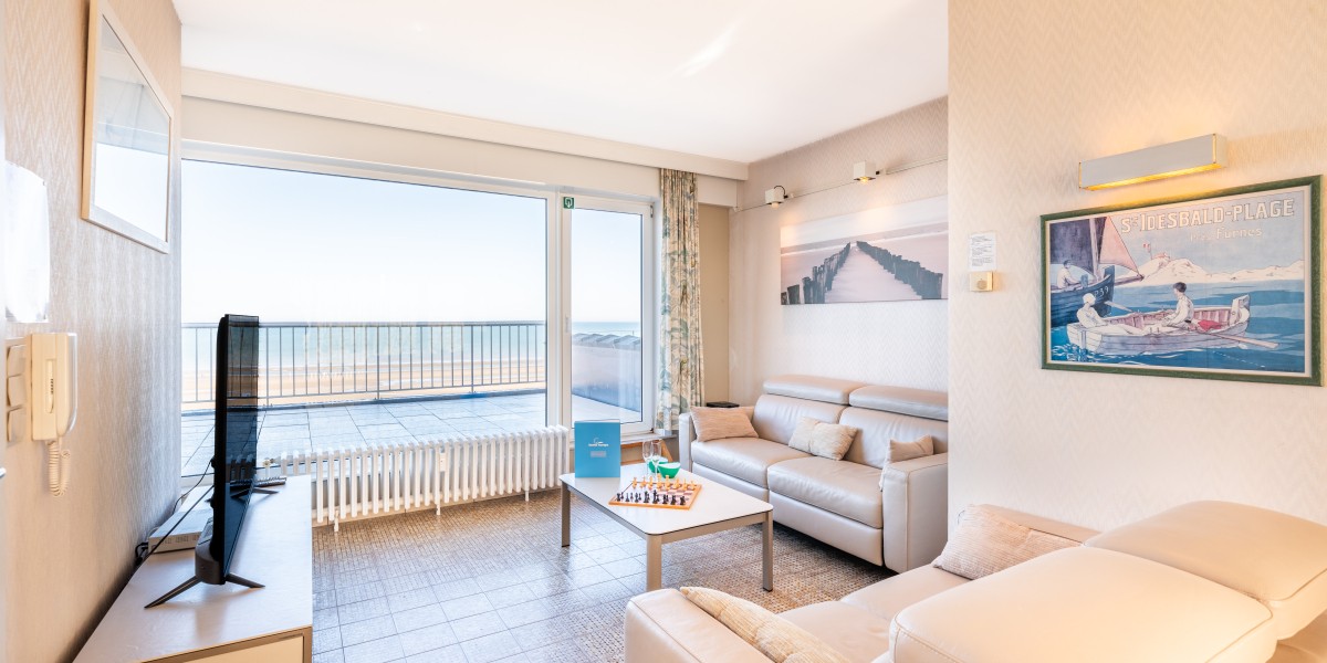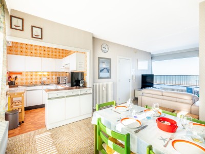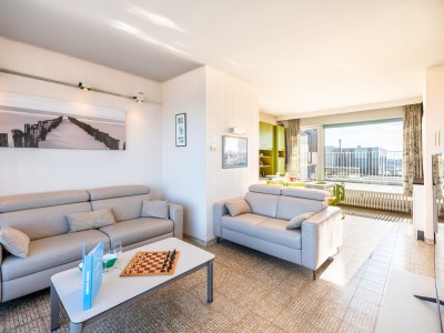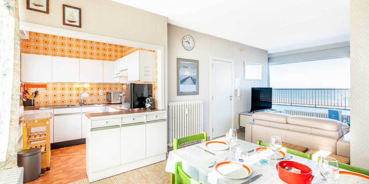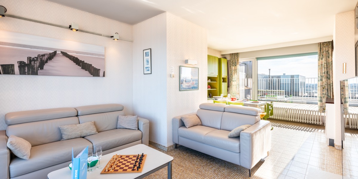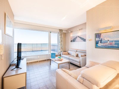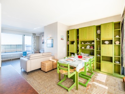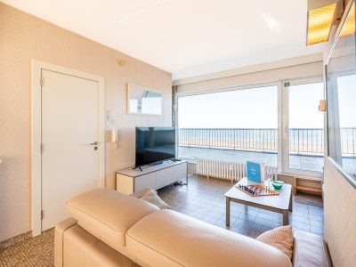 Penthouse avec 2 chambres sur la digue. 2 grandes terrasses. Cet appartement se compose d'un living avec vue sur la mer et accès à la terrasse, salle à manger et cuisine avec accès à la terrasse ensoleillée. Salle de bains avec baignoire, une chambre double et une chambre avec deux lits simples. TV digitale et wifi. Animaux acceptés.