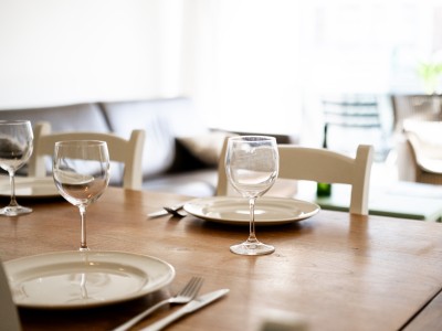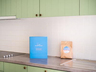 Living, cuisine ouverte équipée. Une chambre avec un lit double. Un coin à dormir avec un lit superposé. Salle de douche et toilette séparée.