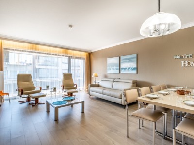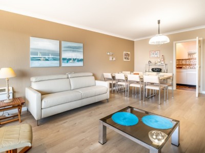 Ce confortable appartement d'une chambre au troisième étage (ascenseur), avec vue partielle sur la mer est à un jet de pierre de la plage. Il se trouve à quelques minutes des commerces et des restaurants. L'appartement dispose d'un salon spacieux, cuisine séparée. Bien entretenu et meublé dans un style classique. Animaux sont interdit.