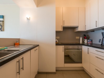 Superbe vue sur mer du living, Cuisine équipée de tout confort, une chambre avec un lit double, une chambre avec un lit superposé rabatable et un lit rabatable pour 2 personnes. Salle de bains avec douche.
